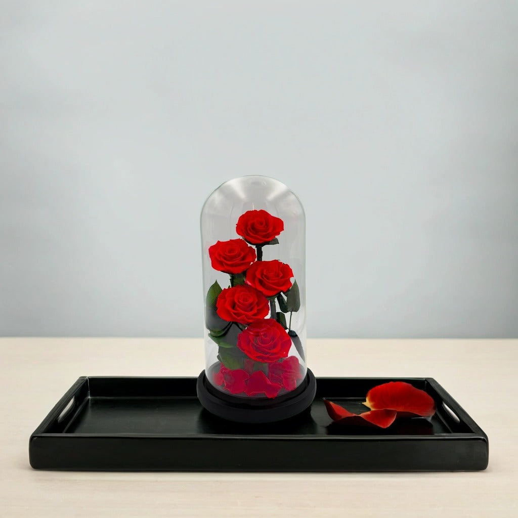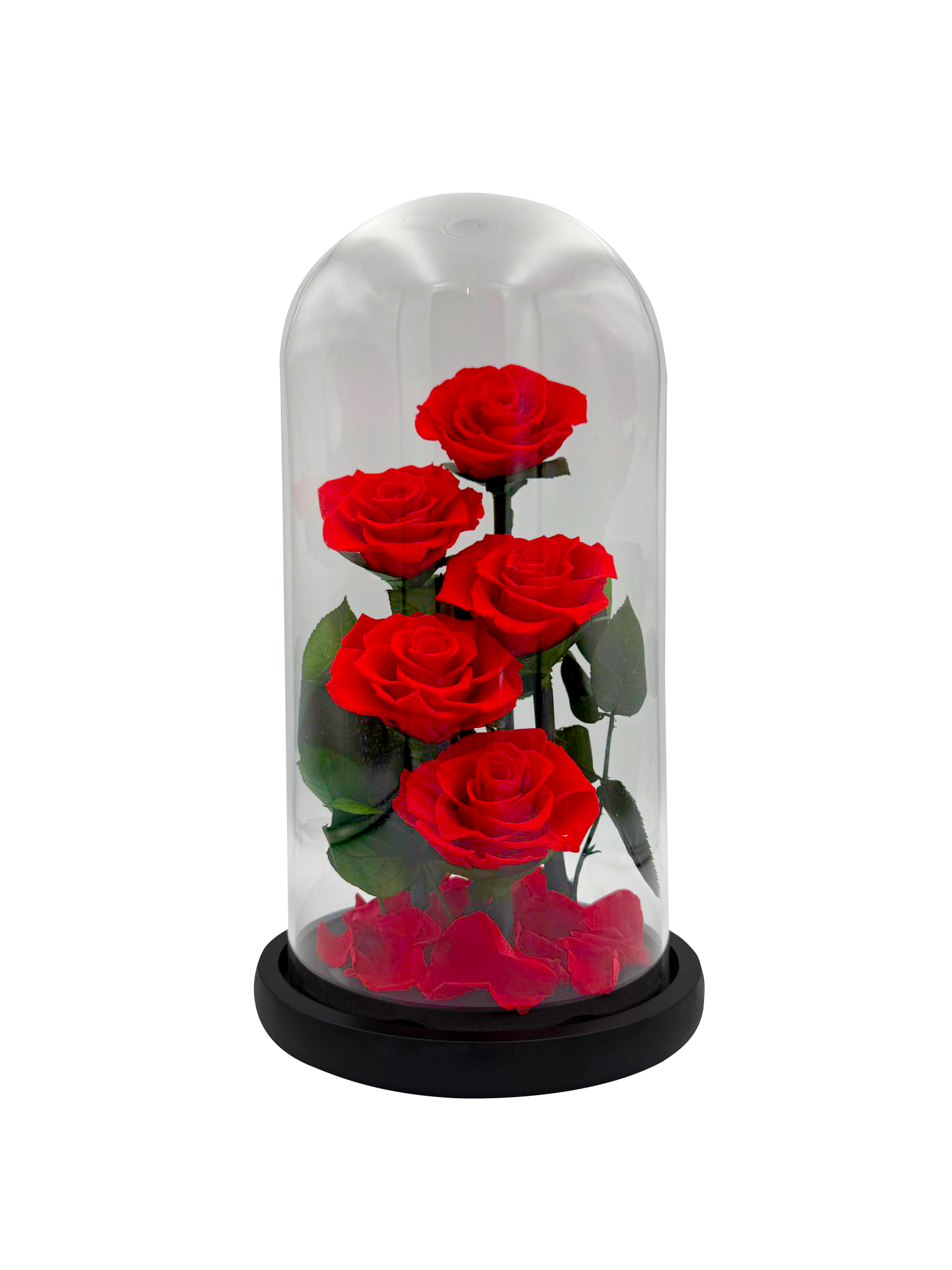 Add a touch of elegance to your home or gift with the Red Roses Glass Dome. Encased in a clear glass dome, the vibrant red roses radiate love, passion, and timeless beauty. Ideal as a romantic gesture, a decorative highlight, or a special gift for any occasion.