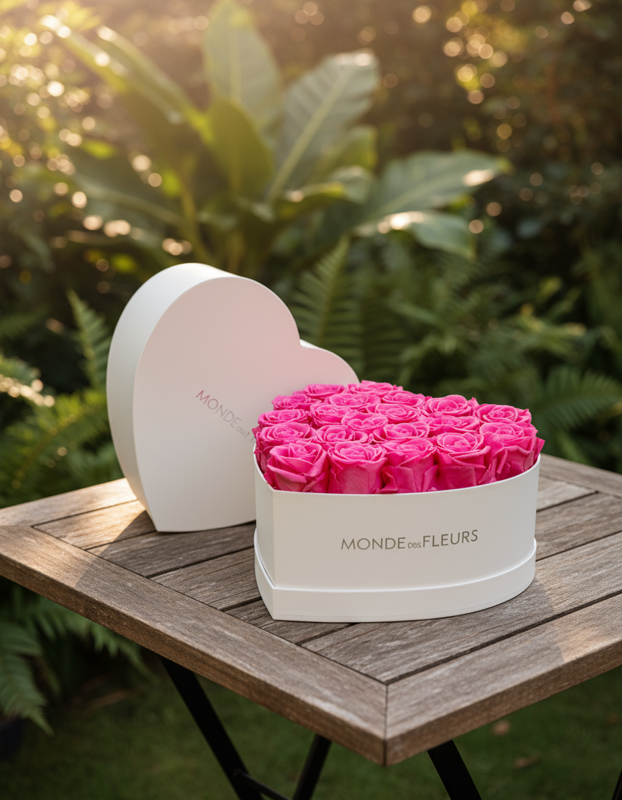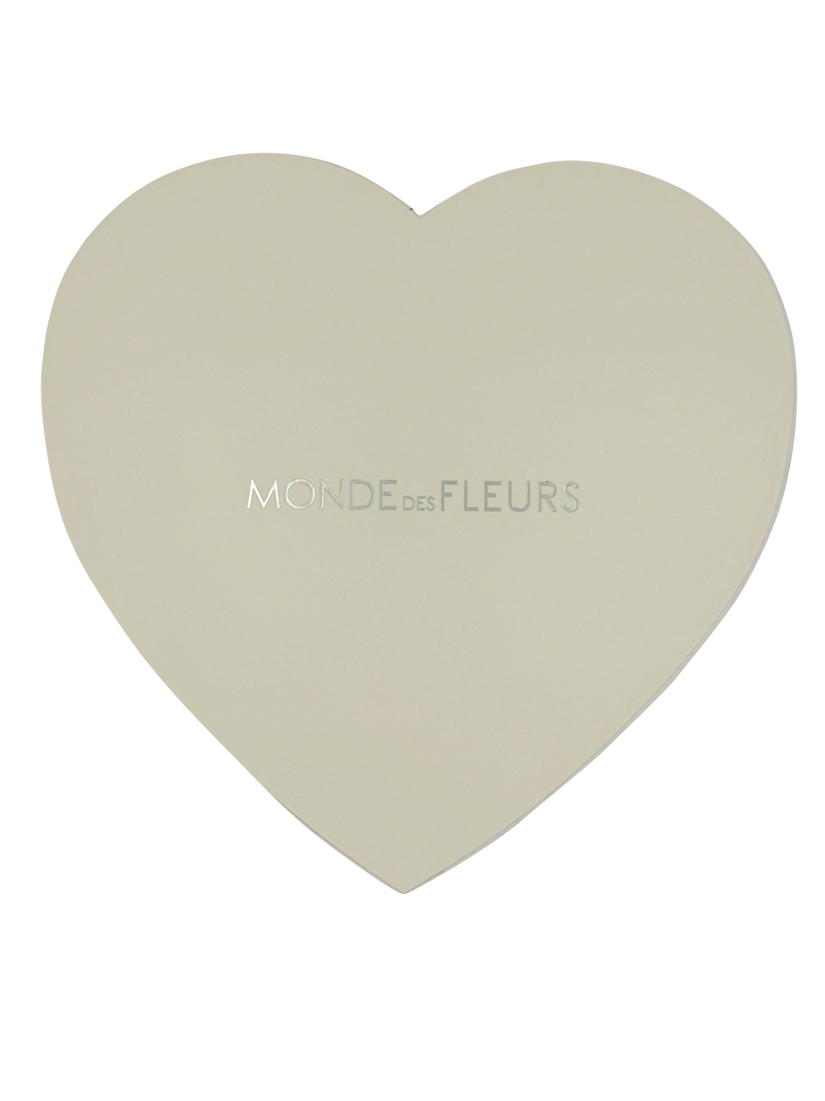 Luxuriöses Design – Herzförmige Box in elegantem weiß mit edler Prägung MONDE DES FLEURS.