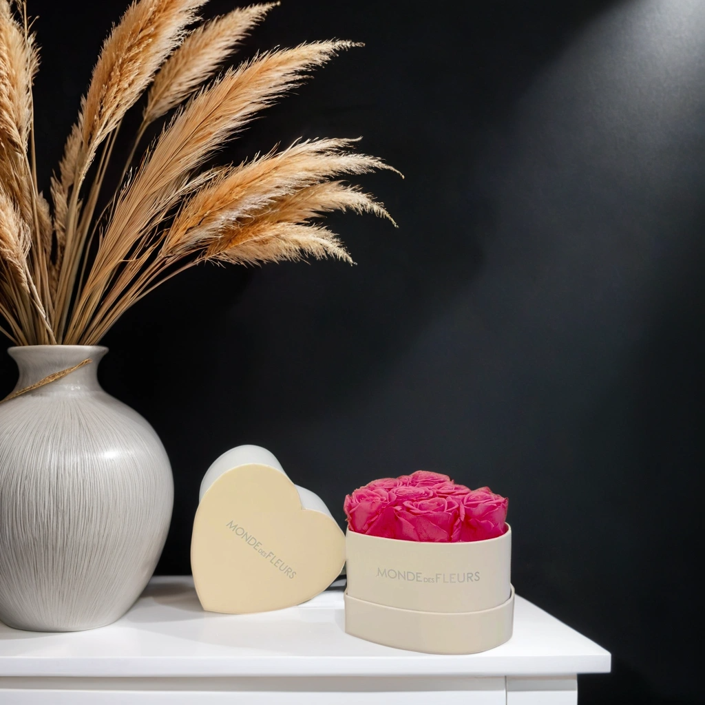 Die Heart Shaped Small Pink ist eine stilvolle, herzförmige Rosenbox im Mini-Format – perfekt, um mit einer kleinen, aber aussagekräftigen Geste große Gefühle auszudrücken. Gefüllt mit prachtvollen, pinkfarbenen Rosen ist sie das ideale Geschenk für romantische Anlässe, kleine Überraschungen oder als elegantes Deko-Highlight.